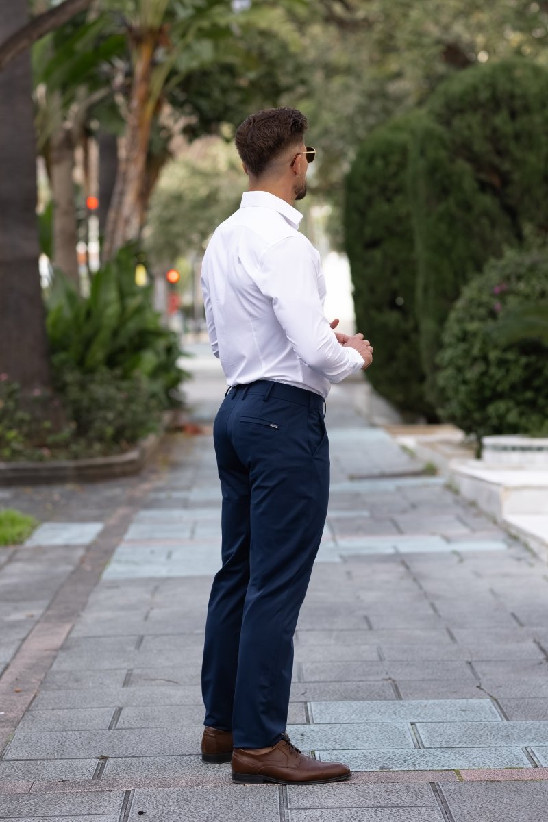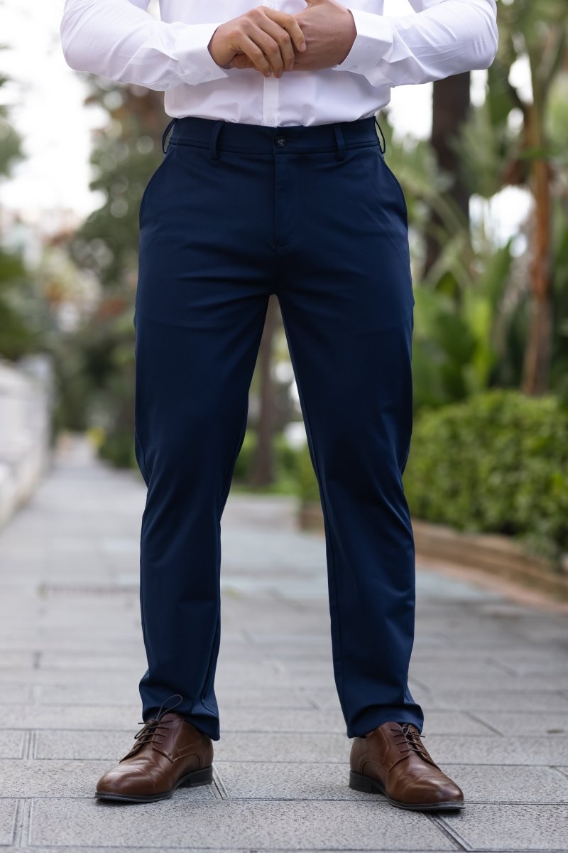 Navy Stretch Performance Chino Pants Slim Fit For Muscular Legs | Kojo Fit