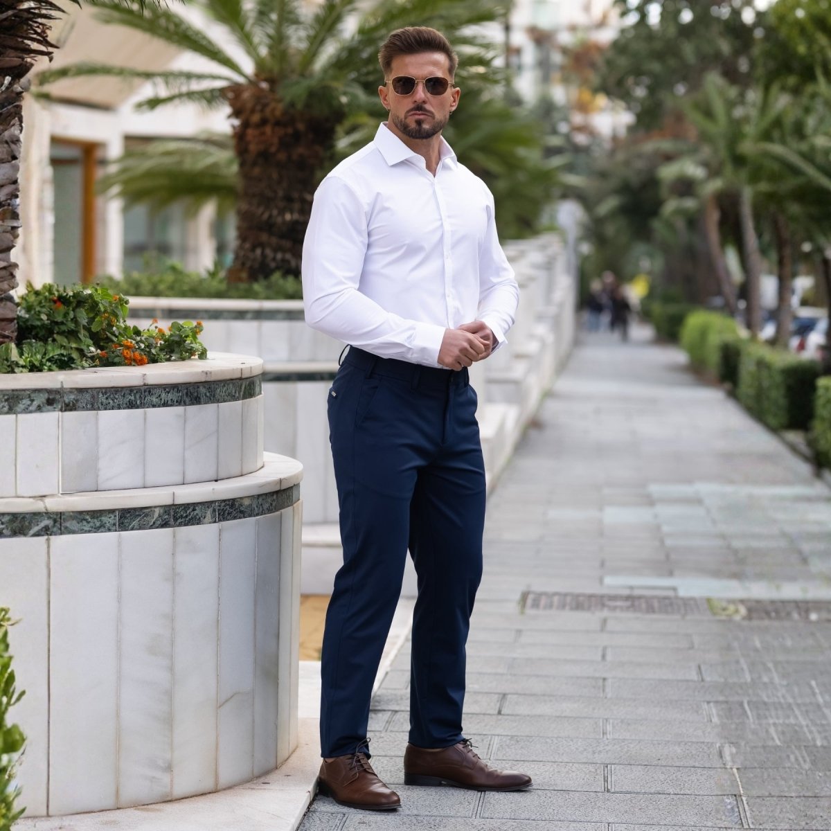 Experience confidence with a tailored slim fit style, with all-day comfort for work, or dressing up a level for social wear.
